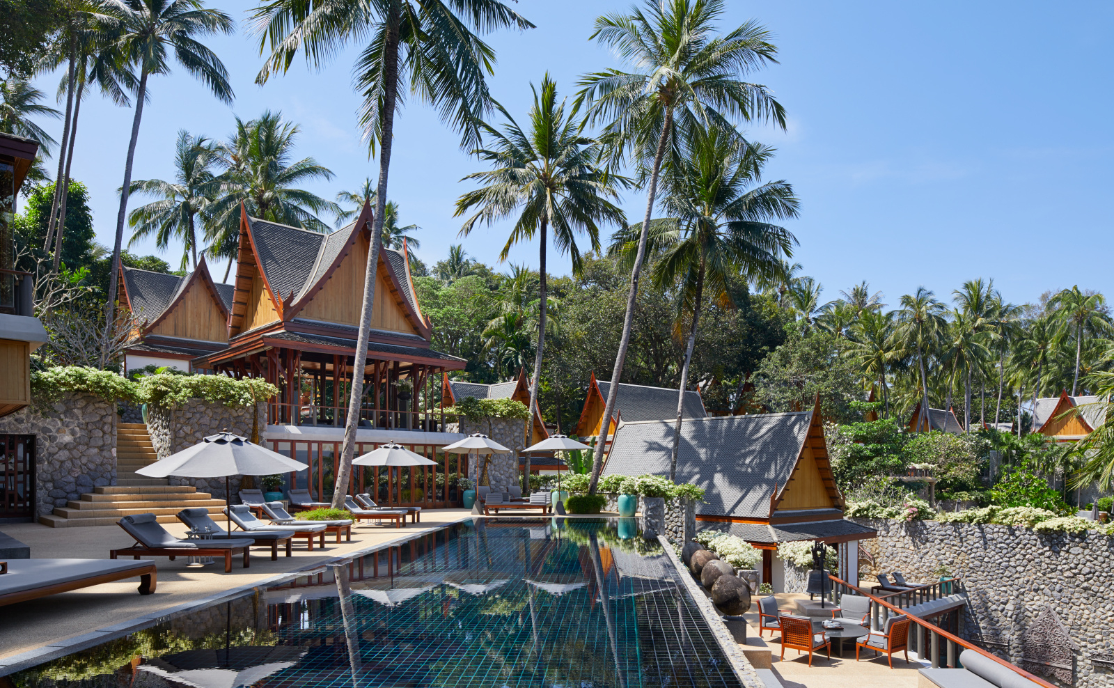 Overlooking the turquoise waters of the Andaman Sea, Amanpuri’s Eight Bedroom Ocean Villa offers large groups the chance to reconnect in a secluded location with dramatic views across the water. Eight separate king-sized bedrooms provide a place to find peaceful tranquillity, while generously proportioned open-air living and dining salas, a large central swimming pool and a courtyard create a place where guests can gather. While outdoor living is celebrated, the villas also offer large, elegantly appointed interiors with spacious living and dining rooms alongside a dedicated chef specialising in home style Thai cooking. A dedicated housekeeper is also on hand to ensure a seamless stay.