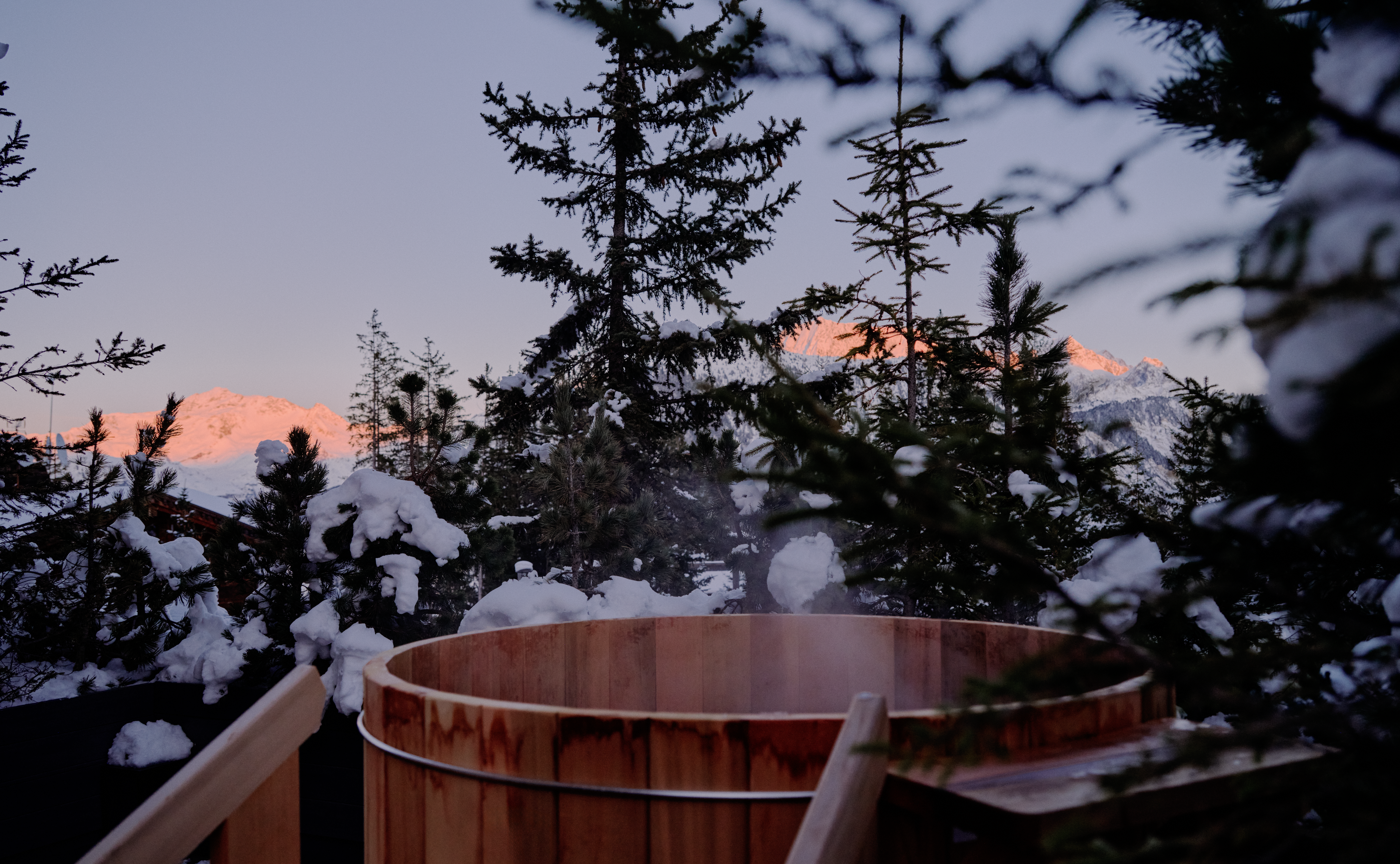 A large outdoor terrace with a private Norwegian Hot Tub makes the Suite Ski Piste with Hot Tub one of Aman Le Mélézin’s most impressive rooms. Overlooking the Bellecôte Piste, the 65 square metre (699 square feet) space offers a private living room, bedroom with king-sized bed, large dressing room and bathroom with twin vanities and a bathtub. Accessed through terrace doors that fill the room with natural light, the south-facing outside space is ideal for nights spent admiring the view, or simply retreating after a day of exploration.